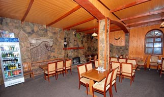 Кафе расположено на первом этаже отеля. Отличная обстановка, уютный интерьер из природного камня и дерева, а также камин. К вашим услугам — великолепный выбор блюд национальной и европейской кухонь. Кафе рассчитано на 40 человек. В тёплое время года вы можете посетить террасу кафе расположенную перед отелем.